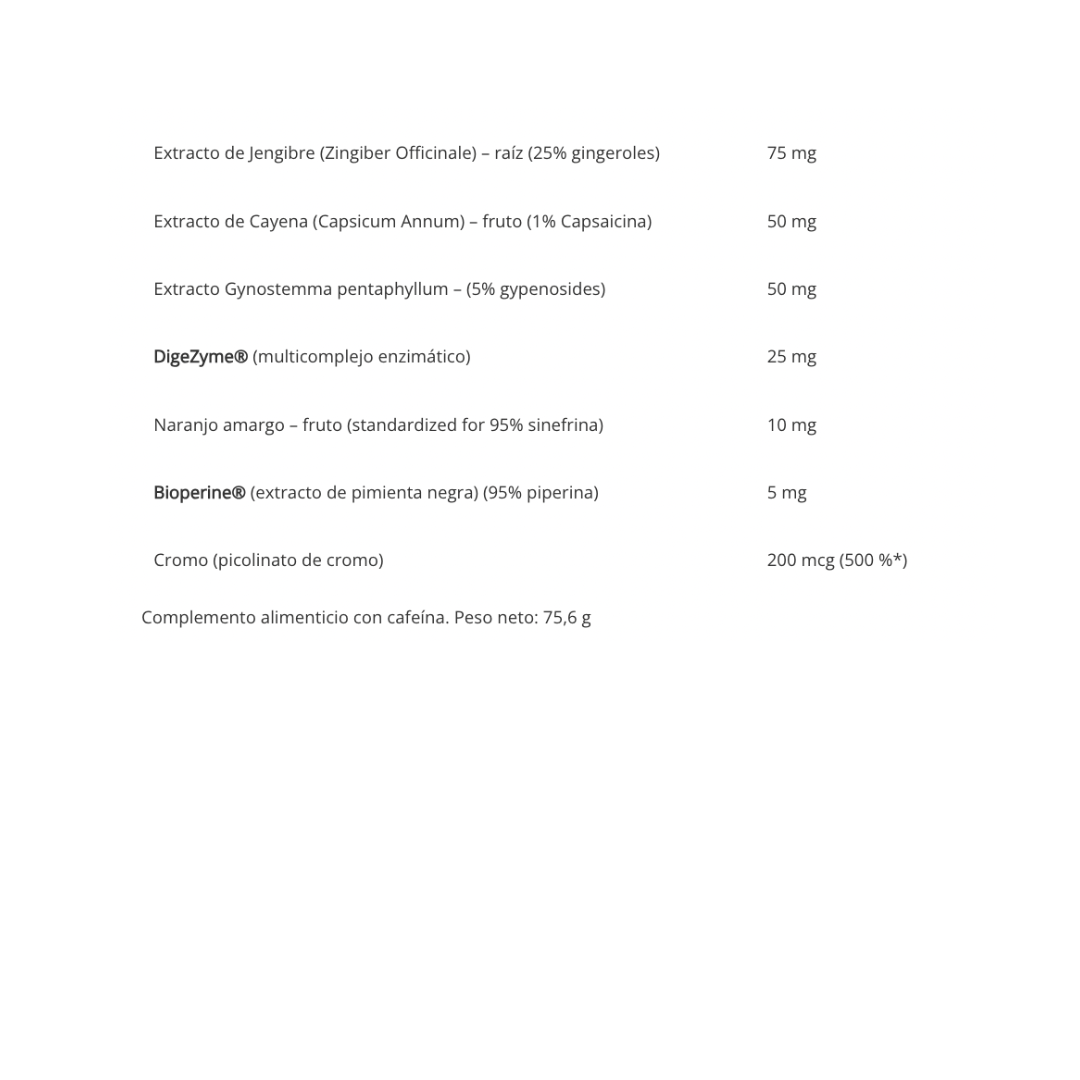 • Fórmula completa con extractos vegetales, enzimas y estimulantes naturales.