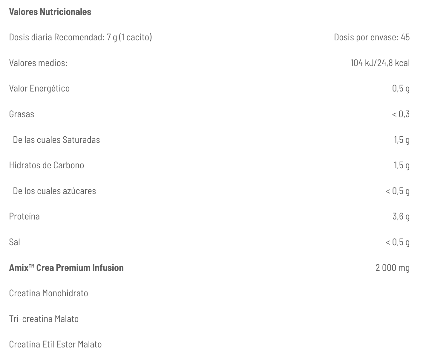 Mezclar con 200–300 ml de agua y tomar 30–45 min antes del entrenamiento.